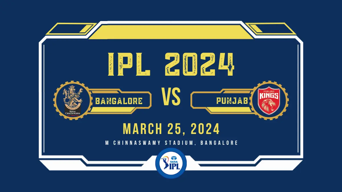 Get ready for the IPL T20 Cricket extravanza as Royal Challengers Bangalore take on Punjab Kings on Mar 25, 2024 at M Chinnaswamy Stadium, Bangalore, Bengaluru.